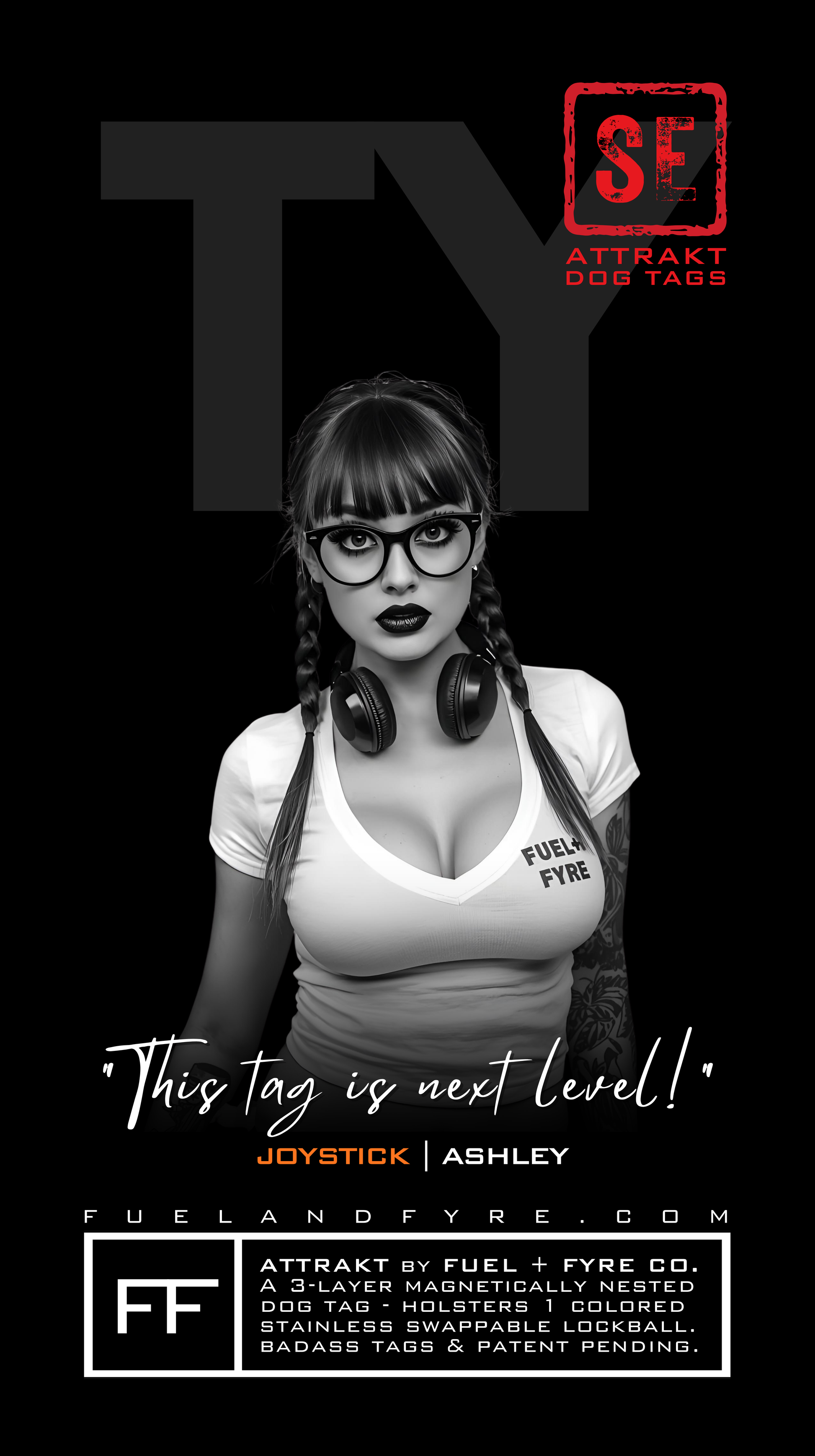 "THIS TAG IS NEXT LEVEL! Finally got a new GAMER TAG with my new JOYSTICK SE. These guys clearly have way too much time on their hands and I love it! I uploaded this pic on the FYRE SIDE and Chewie (my hamster) on the FUEL SIDE. Went with the retro gamer Black, Pylon and Baby Pink Lockball + Shackle sets. LOCK + LOAD BABY!"